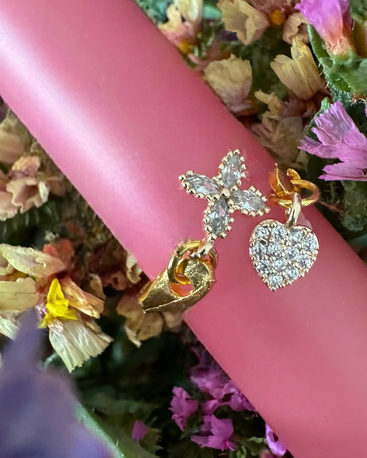 Laissez-vous séduire par cette bague ALBA -ATELIER BLONDINETTES- réglable en acier inoxydable doré, ornée d'un cœur et d'une fleur étincelants de mille feux grâce à leurs strass. Un bijou à la fois tendance et intemporel, parfait pour ajouter une touche de féminité à toutes vos tenues.