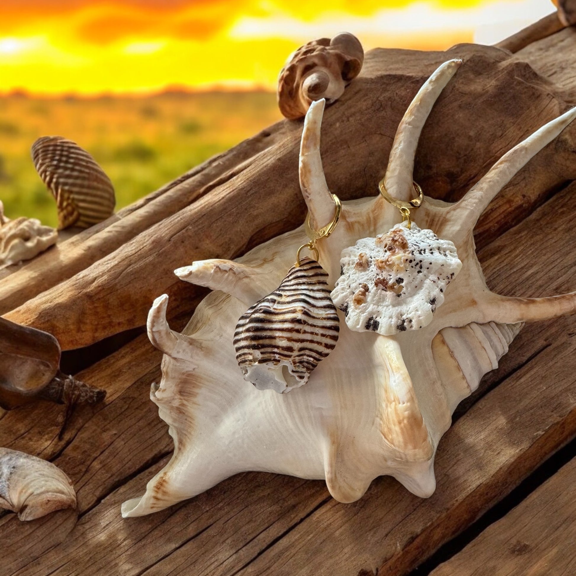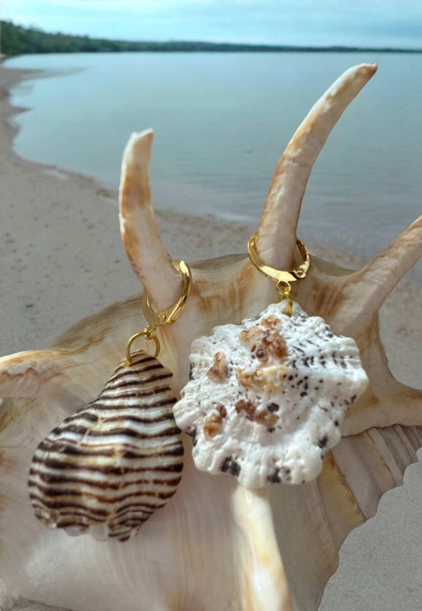Ces BOUCLES D'OREILLES CANA -ATELIER BLONDINETTES- en acier inoxydable doré sont ornées de coquillages ramenés de République Dominicaine. Inspirées de nos voyages, elles ajoutent une touche estivale et raffinée à toutes vos tenues.