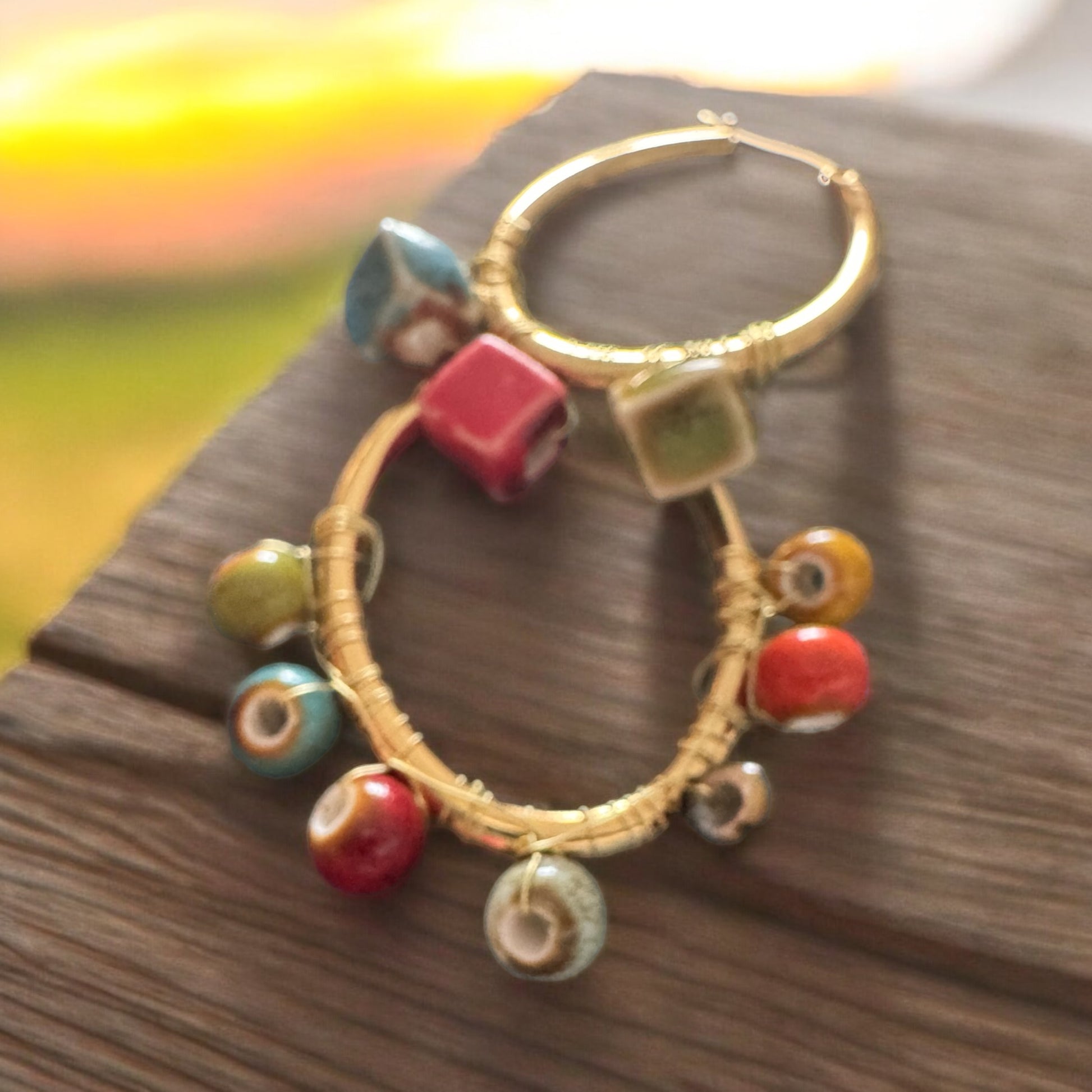 Apportez une touche de fantaisie à votre look estival avec ces imposantes boucles d'oreilles créoles CUBA -ATELIER BLONDINETTES- ! En acier inoxydable doré et ornées de perles colorées en céramique, ces boucles d'oreilles apporteront une touche amusante et originale à votre tenue. Le parfait accessoire pour briller cet été !
