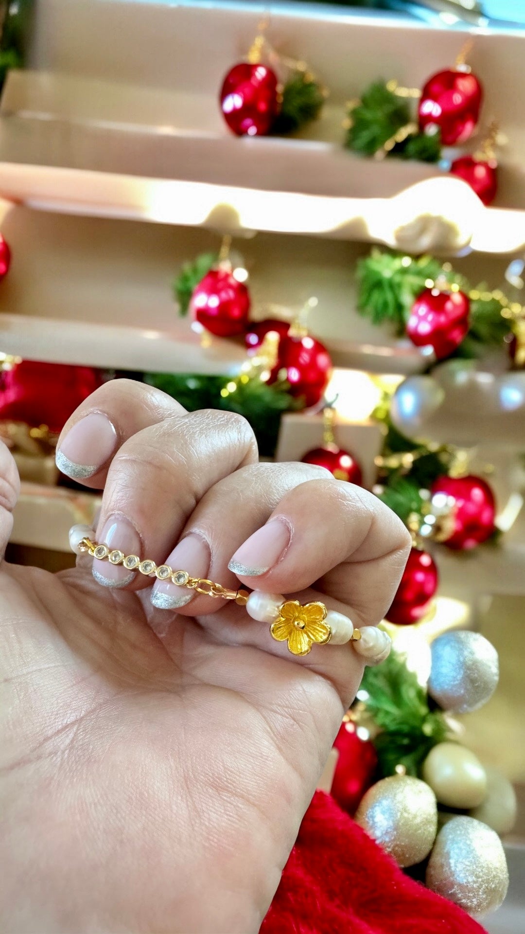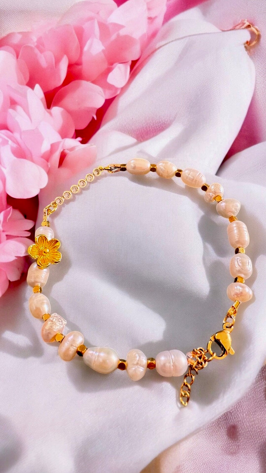 Les perles de nacre, aux formes irrégulières et aux reflets changeants, apportent une touche d'authenticité et de charme à notre bracelet FLORINE -ATELIER BLONDINETTES-. Une délicate chaîne de strass vient délicatement épouser votre poignet, ajoutant une note de brillance et de sophistication. Mêlée aux perles de nacre , une fleur en acier inoxydable apporte une touche de féminité et de légèreté. Ce bracelet est l'accessoire idéal pour celles qui souhaitent affirmer leur style avec élégance et originalité.