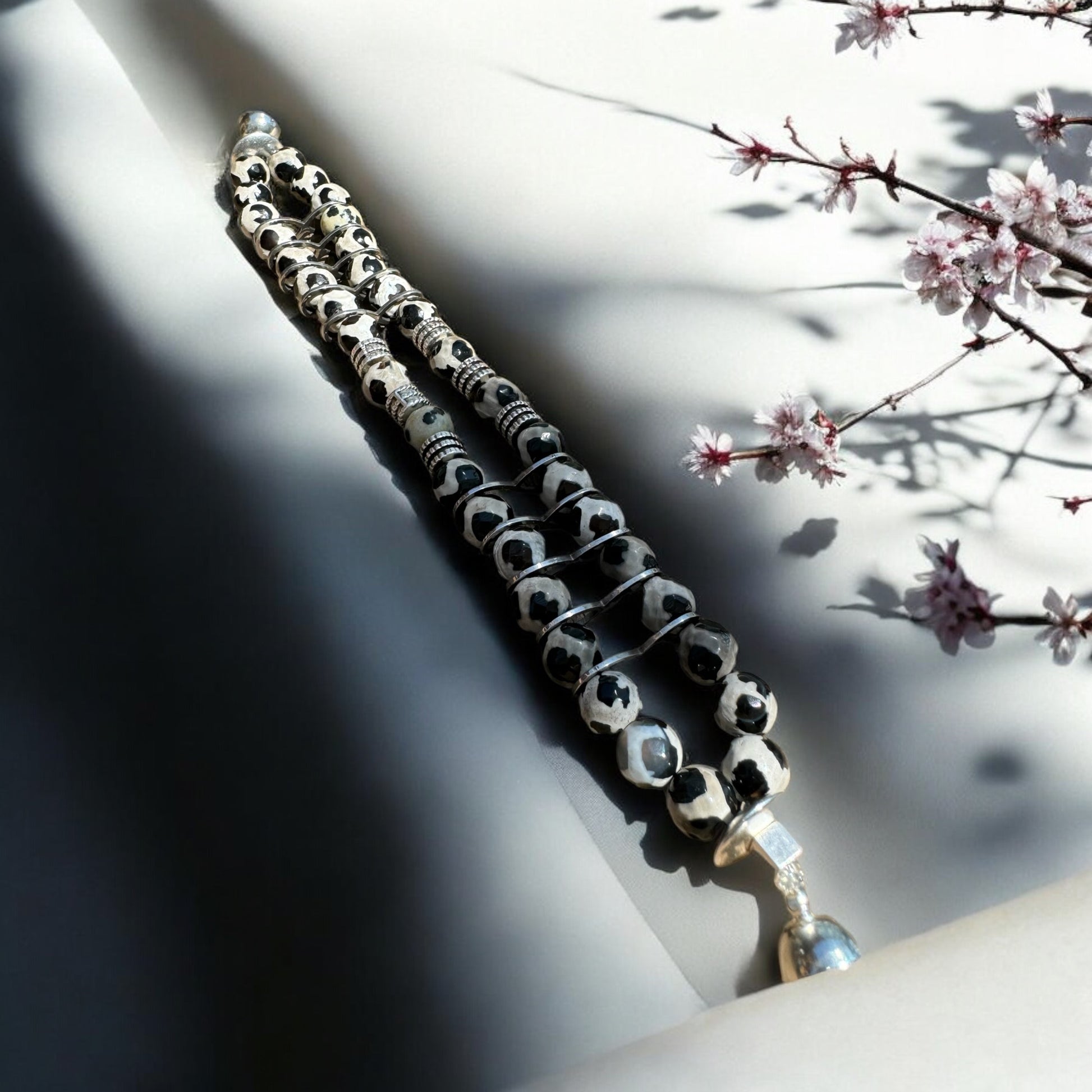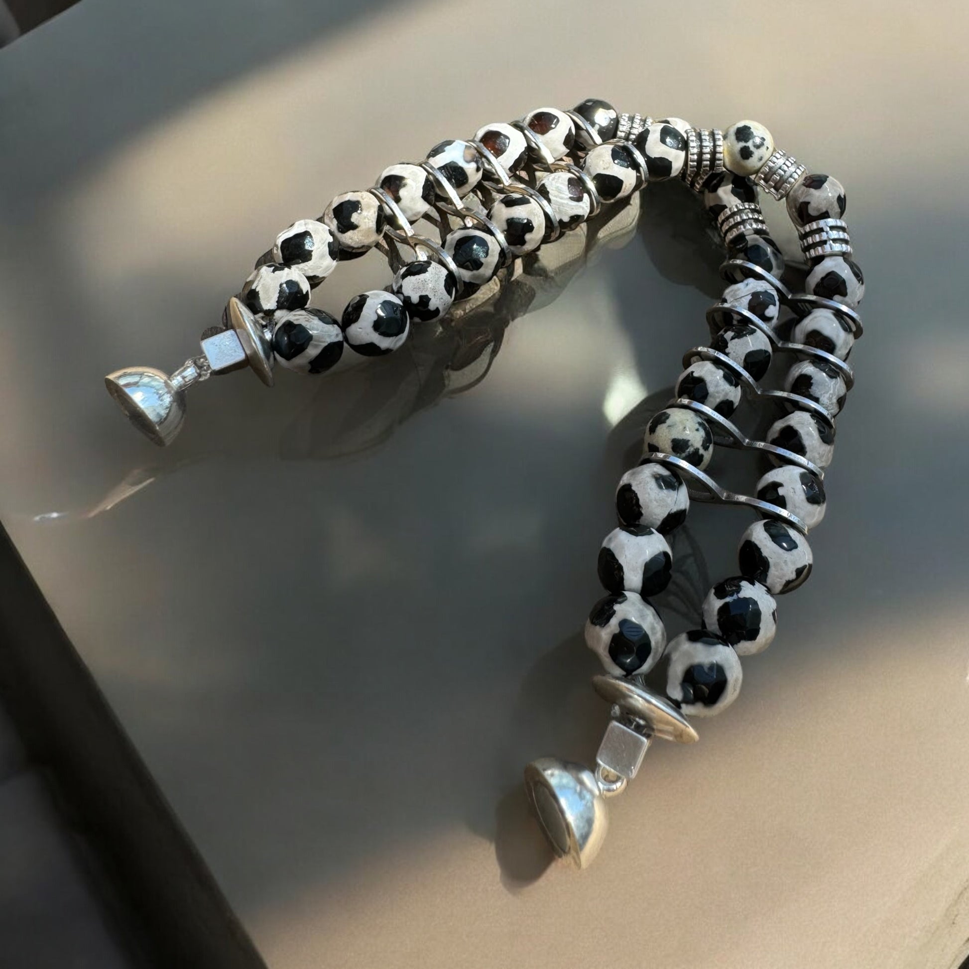 Découvrez la magie de ce bracelet mixte CRUELLA -ATELIER BLONDINETTES- en jaspe dalmatien, pierre naturelle aux motifs uniques. Chaque perle, soigneusement sélectionnée, offre une variation de couleurs et de motifs, rendant votre bijou unique. L'acier inoxydable argenté vient contraster avec la douceur du jaspe. Les infinis, symboles d'éternité, apportent une touche d'élégance et de spiritualité. Le fermoir magnétique, discret et pratique, vous permettra d'enfiler et de retirer votre bracelet en toute simplicité. Aussi élégant porté par Madame que par Monsieur...