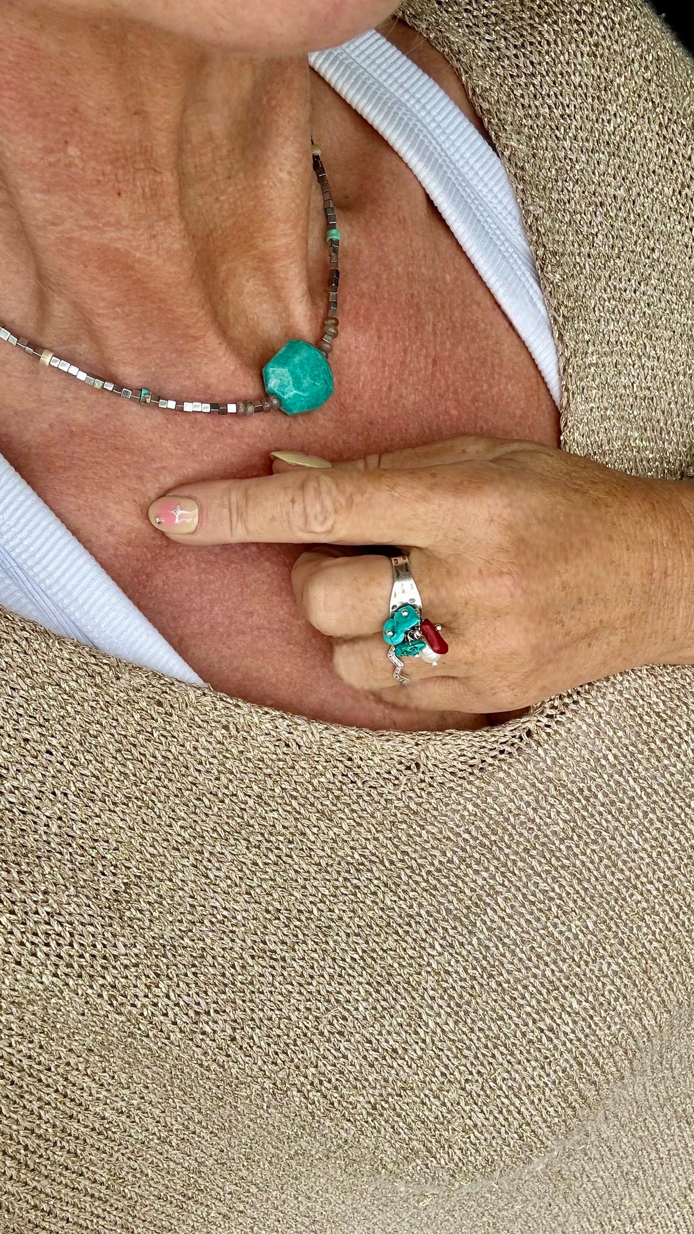 - Matériaux : acier inoxydable, turquoise, nacre