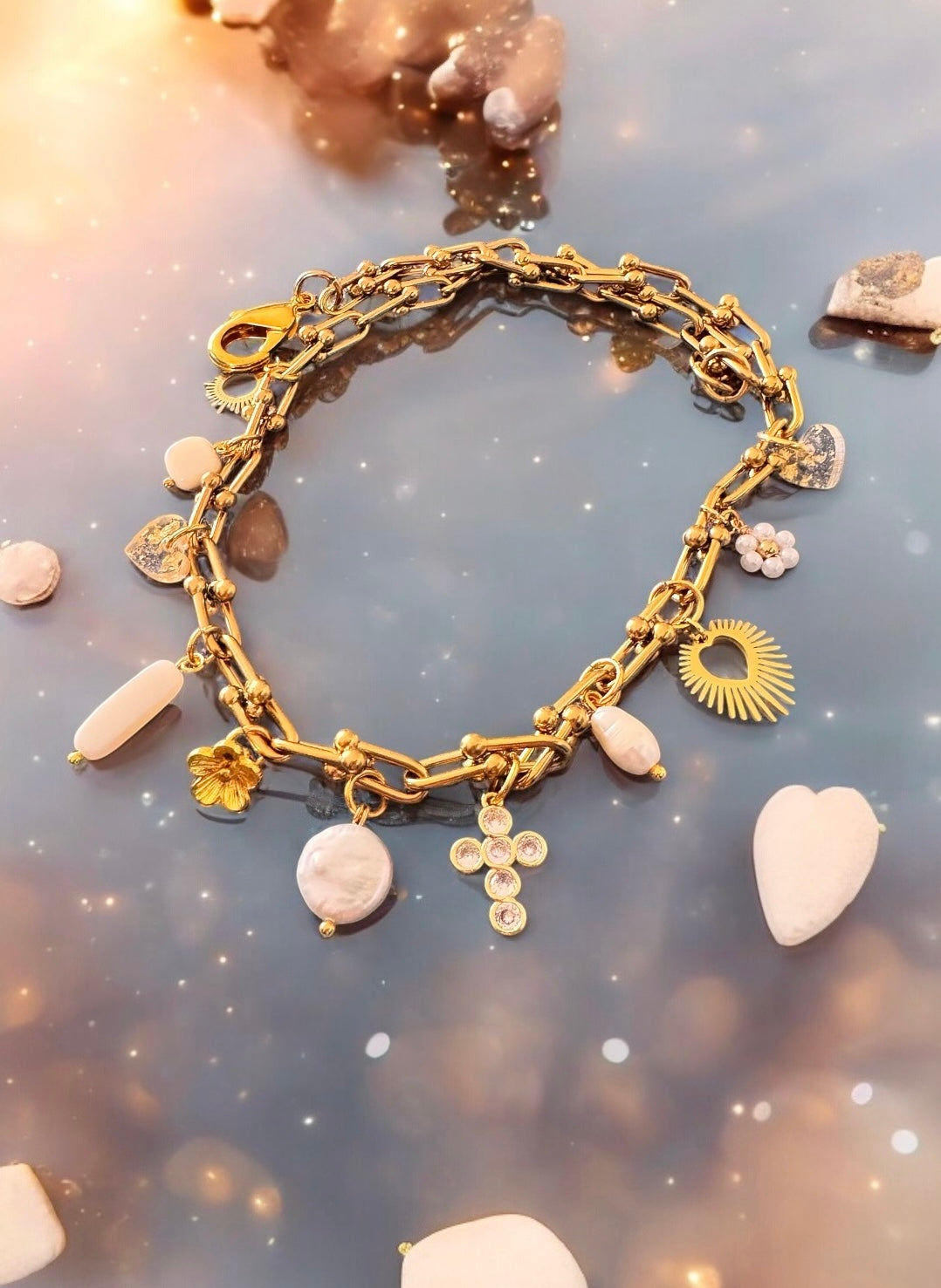 La nacre, douce et lumineuse, vient caresser la peau avec élégance. Un bijou bohème et délicat , parfait pour les âmes rêveuses qui souhaitent ajouter une note de poésie à leur quotidien.
